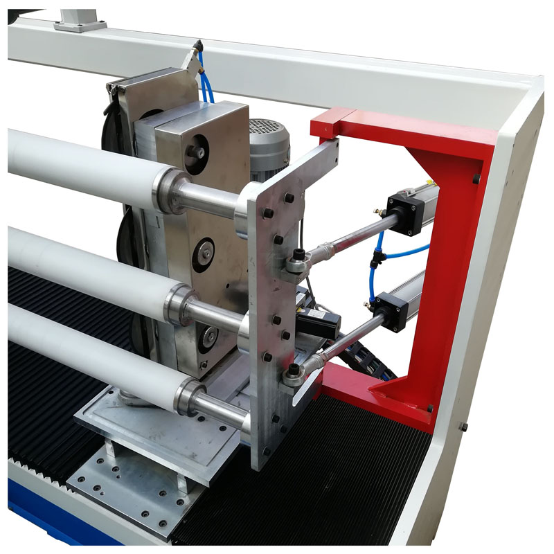 3. 切卷定位系統(tǒng)使用伺服馬達控制,高精度進口滾珠螺桿進行尺寸定位及使用線性滑軌承載刀座,定位動作精準(zhǔn)平順